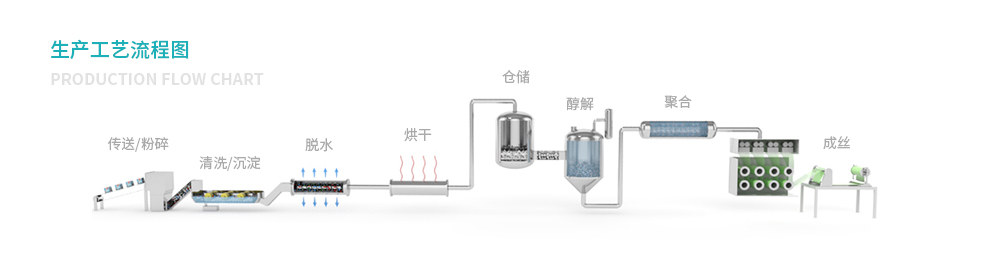 綠宇環保的聚酯再生技術來源于公司自主研發,該技術路線為廢舊聚酯在乙二醇和溫度、壓力作用下解聚至對苯二甲酸二乙二醇酯(BHET),BHET經過濾純化后送入聚合裝置進行聚合得到聚酯。